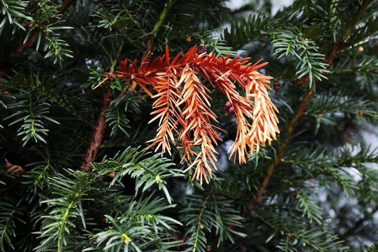 Keywords: yew death dead plant branch needles old brown green conifer die transient die off needle branch softwood