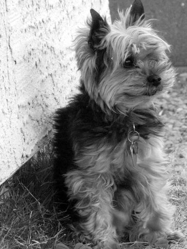 Keywords: yorkie terrier dog pet canine portrait ears pointed black white