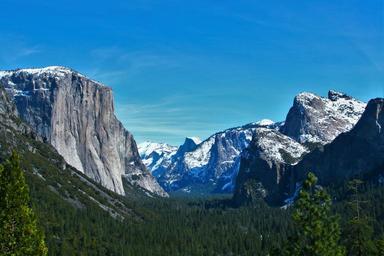 Keywords: yosemite snow thaw reflection blue sky mountain brook arboretum green sky blue landscape sky california national park united states of america spring