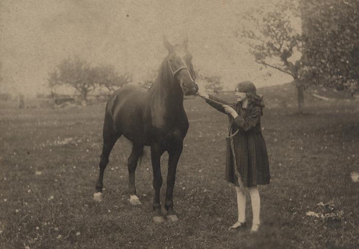 | Keywords: horses women animal outdoor monochrome Photographer: Reuben R. Sallows (1855 - 1937) Description: Young girl stands, facing left, holding lead of a horse. Girl wears knee-length dark dress, white tights, black shoes; long hair tied back with large bow. Horse has white blaze and markings at rear hooves. Tree at right of frame and in upper left quadrant. Sallow imprint in lower right corner of matte. Object ID : 0477-rrs-ogohc-ph View additional photographs by Sallows that are held in other collections at the Reuben R. Sallows Digital Library. Order a higher-quality version of this item by contacting the Huron County Museum (fee applies). Photographer: Reuben R. Sallows (1855 - 1937) Description: Young girl stands, facing left, holding lead of a horse. Girl wears knee-length dark dress, white tights, black shoes; long hair tied back with large bow. Horse has white blaze and markings at rear hooves. Tree at right of frame and in upper left quadrant. Sallow imprint in lower right corner of matte. Object ID : 0477-rrs-ogohc-ph View additional photographs by Sallows that are held in other collections at the Reuben R. Sallows Digital Library. Order a higher-quality version of this item by contacting the Huron County Museum (fee applies). |