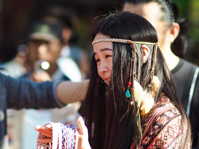 Keywords: young lady accessories sell market clothing job earn money dali outdoors street