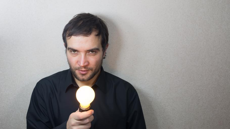 MAKE A MEME View Large Image bulb light idea lamp bright brain concept young guy clever handsome man