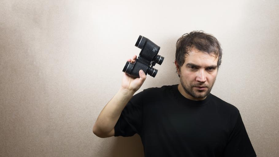Keywords: vision man view search human guy spyglass business character people one figure lens holding found look person binocular observe male handsome monitoring copy space