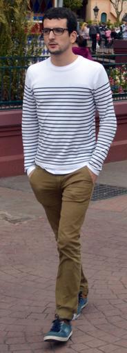 Keywords: Young man with glasses in marinière sweater.jpg en Young man wearing glasses a marinière sweater and brown chino trousers in Disneyland Park Paris 2015-09-19 14 24 56 own DimiTalen other versions cc-zero Uploaded with UploadWizard Marinière shirts Trousers Black glasses Walking men Files by User DimiTalen |