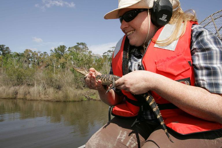 View Original:Young woman holds a baby alligator while on an air boat.jpg (3504x2336)