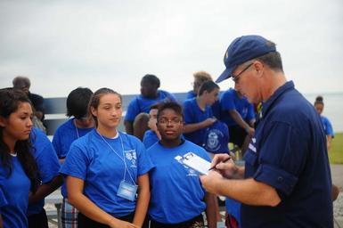 Keywords: Youth Leadership DVIDS1121385.jpg en Senior Chief Petty Officer Del Hayes grades campers of the Youth Leadership Program on their knowledge of firefighting techniques and associated safety precautions Friday Aug 10 2012 at Coast Guarding Training Center Yorktown in Yorktown Va The Newport News Police Department's 2012 Youth Leadership Program partnered with the Boys and Girls Club of America and the Coast Guard to provide local youth with opportunities to develop and strengthen leadership skills U S Coast Guard photo by Seaman Katelyn Tyson 2012-08-10 Seaman Katelyn Shearer https //www dvidshub net/image/1121385 1121385 2013-12-13 00 10 PD-USGov Firefighting training Images from DoD uploaded by Fæ |
