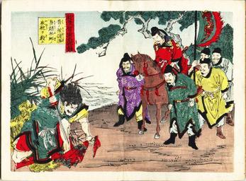| Keywords: Yu Rang cuts the robe, ascribed Nobukazu.jpg  en Loyal Assassin Yu Rang to avenge his lord Zhi Bo cuts the dress of Viscount Zhao Xiangzi three times 2016-03-31 20 01 02 Watanabe Nobukazu cf http //archive library metro tokyo jp/da/detail tilcod 0000000004-00000240 Item No 0871-S1 - Sugoroku book of unknown Meiji ukiyo-e artist possibly Watanabe Nobukazu titled Comparison of Famous Men of Wisdom and Courage from Japan and China Created around 1895 published 1895 unknown Author possibly Watanabe Nobukazu died 1944 other versions PD-old-70-1923 History of China Ukiyo-e Chinese culture |