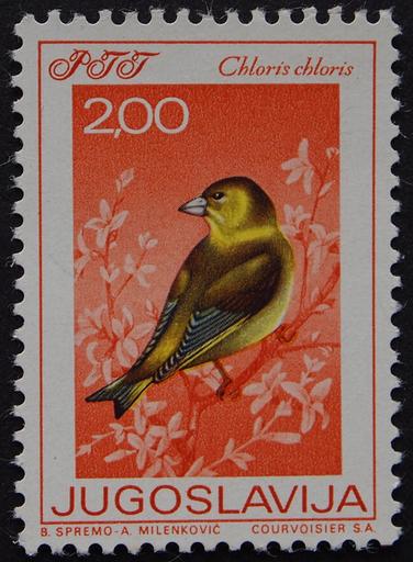 | Keywords: Yugoslavian stamp with Carduelis chloris 1968.jpg Yugoslavian stamp with Carduelis chloris http //colnect com/en/stamps/stamp/313828-European_Greenfinch_Carduelis_chloris-Birds_-_Finches-Yugoslavia 1968-05-25 author PD-Yugoslavia Stamps of Yugoslavia 1968 Chloris chloris Birds on stamps of Yugoslavia |