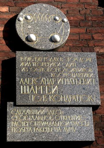 Keywords: Yuri Kondratyuk board SPb.jpg емо иальная доска 14-я линия дом 33 В О Санкт-Пете бу г Россия адпись на доске В 1916-1917 годах в этом доме<br> жил тео етик и один <br> из основоположников<br> космонавтики<br> Александ Игнатьевич<br> Ша гей<br> Ю В Конд атюк <br> <br> сделавший здесь<br> свое главное отк ытие - <br> асчет оптимальной т ассы<br> полета акеты на Луну <br> Marble plaques 14-line building 33 Vasilievsky Island Saint-Petersburg Russia The title on the memorial plaque In 1916-1917 Yuri Kondratyuk lived in this building who is one of founders of astronautics he has made here his main discovery - calculations of an optimal trajectory to take a spacecraft to Moon Own 2012-02-12 User AKA_MBG/Info AKA MBG 14 Linia Vasilievsky Island Yuri Kondratyuk Engineers from Russia Here-lived plaques in Russia