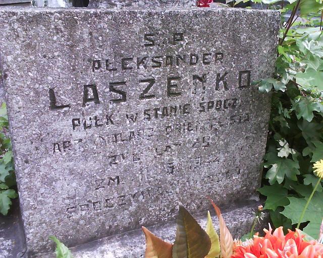 Keywords: Zacierana przez czas tablica nagrobna artysty.jpg en Artist's gravestone Barely visible inscription Colonel Retired Orientalist painter pl Tablica nagrobna artysty Z trudem można odczytać napisy Pułkownik w stanie spoczynku Artysta malarz orientalista own Demi Sec 2011-05-14 Cc-zero Aleksander Laszenko Chopin Avenue Cemetery in Włocławek |