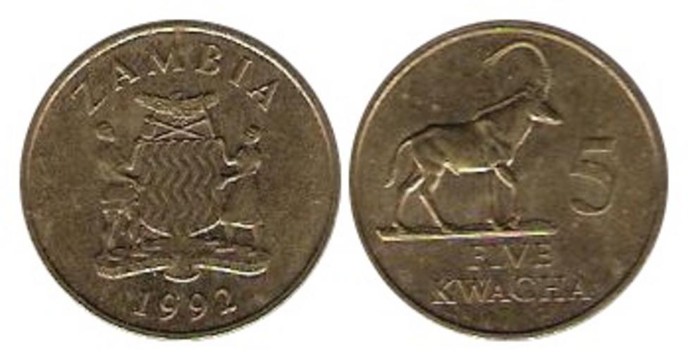 MAKE A MEME View Large Image Zambian 5 kwacha.JPG Zambian 5-kwacha coin 1992 Moneda de cinco kwachas zambianos de 1992 2006-08-26 own assumed B25es Coins_of_Zambia 1992 in Zambia