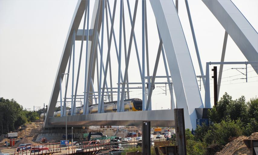Keywords: outdoor zandhazenbrug brug bridge railroad bridge railroadbridge spoorbrug treinbrug train bridge trainbridge indfrastructure infrastructuur snelweg a1 snelwega1 muiderberg virm verlengt interregio materieel verlengtinterregiomaterieel ns nederlndse spoorwegen nederlndsespoorwegen trein train netherlands snelweg highway freeway autosnelweg bovenleiding bovenleidingsmasten bovenleidingportalen overhead wires overheadwires overhead lines overheadlines bovenleidingmasten wegwerkzaamheden road works roadworks building architecture building structure infrastructure De nieuwe spoorbrug over de A1 t.h.v. Muiderberg. De nieuwe spoorbrug over de A1 t.h.v. Muiderberg. |