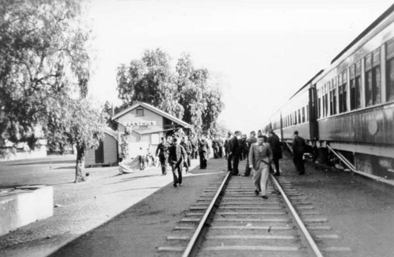 | Keywords: Zanthus, Western Australia-1940.JPG source http //john curtin edu au/railway/opposition/railway8 html credits Photograph P Rogers Collection Courtesy V Marsh text The Trans Australian Railway was the main route for the movement of Australian troops during World War II Here RAAF personnel enjoy a stopover probably to allow the steam locomotive to take on water at Zanthus circa 1940 Railway stations in Western Australia Trans Australian railway PD-Australia | ||||