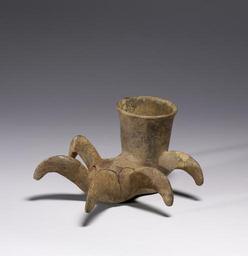 | Keywords: Zapotec - Vessel of a Bat Foot with Claws - Walters 2006153 - Three Quarter.jpg The bat appears with notable frequency in the art of Monte Albán and other Zapotec cities in the Valley of Oaxaca Mexico Throughout Mesoamerica bats were associated with death and sacrifice In addition to figural funerary urns forms of bat feet such as this example were also prevalent The particularly long claws of this example are most similar to late variants of the form leading to the chronological placement near the end of the Classic period of Zapotec culture between 650 900 Monte Albán IIIB-IV gray earthenware cm 10 48 18 42 accession number 2006 15 3 19727 Norman Lane New Mexico prior to March 2006 Austen-Stokes Ancient Americas Foundation John Stokes as agent March 28 2006 by purchase Arte Primitivo New York as agent Walters Art Museum Gift of the Austen-Stokes Ancient Americas Foundation 2007 place of origin Oaxaca Mexico Walters Art Museum license Zapotec pottery in the Walters Art Museum Zapotec pottery Media contributed by the Walters Art Museum needs category review Bats in Pre-Columbian art |
