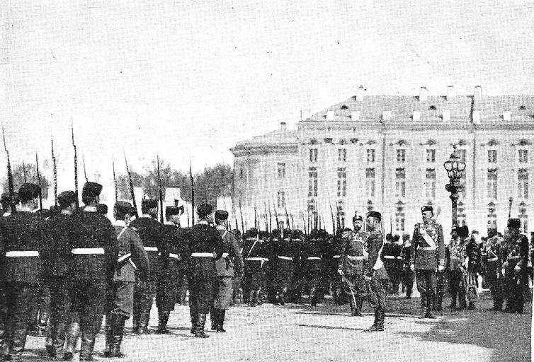 Keywords: princip “primera guerra mundial” wwi “world war i” sarajevo kaiser wilhelm zar nicolas zarnicolas serbia “gran bretaña” austria berlin belgrado belgica bruselas paris verdun ypres marne somme gallipoli rusia schlieffen “san petersburgo” lenin “erster weltkrieg” deutschland preußen preusen germany alemania grossbritannien “united states” “soviet union” antwerp prussia union sovietica unionsovietica artois cerna mons galicia polonia arras amiens mata hari matahari champagne tregua navidad treguanavidad krasnik komarov jadar przmysl lodz lemberg tannenberg lions lyons mulhoude lorena ardenas charleroi alsacia souchon navidad racionamiento blackandwhite monochrome outdoor building architecture black and white Fotografía tomada en 1914 en la que se ve al Zar Nicolás II saludando el paso del Regimiento de la Guardia Imperial de Granaderos. El personaje de elevada estatura que se ve detrás del Zar es el Gran Duque Nicolás que comandó las fuerzas imperiales de Rusia. Fotografía tomada en 1914 en la que se ve al Zar Nicolás II saludando el paso del Regimiento de la Guardia Imperial de Granaderos. El personaje de elevada estatura que se ve detrás del Zar es el Gran Duque Nicolás que comandó las fuerzas imperiales de Rusia. |
