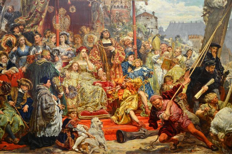 | Keywords: Zawieszenie dzwonu Zygmunta (fragment obrazu).jpg Artwork Q8067460 Creator Jan Matejko 1874 oil canvas cm 94 189 Institution National Museum Warsaw accession number MP 441 object history credit line part / fragment Pudelek See below PD-old-100 The Hanging of the Sigismund bell at the Cathedral Tower in 1521 in Kraków by Jan Matejko Quality images of Warsaw Quality images of paintings Quality Images by Marcin Szala QualityImage | ||||