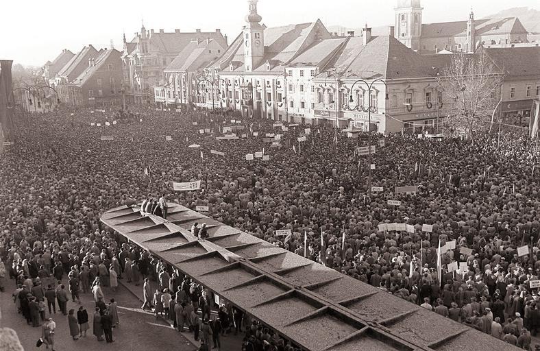 | Keywords: Zborovanje ob 40-letnici ZKJ in SKOJ v Mariboru.jpg Zborovanje ob 40-letnici ZKJ in SKOJ v Mariboru 120780 1959-10-24 creator Jože Gal PD-Slovenia 1959 in Slovenia Historical black and white photographs of Maribor Main Square Maribor Ceremonies in Maribor Photographs by Jože Gal Crowds in Maribor |