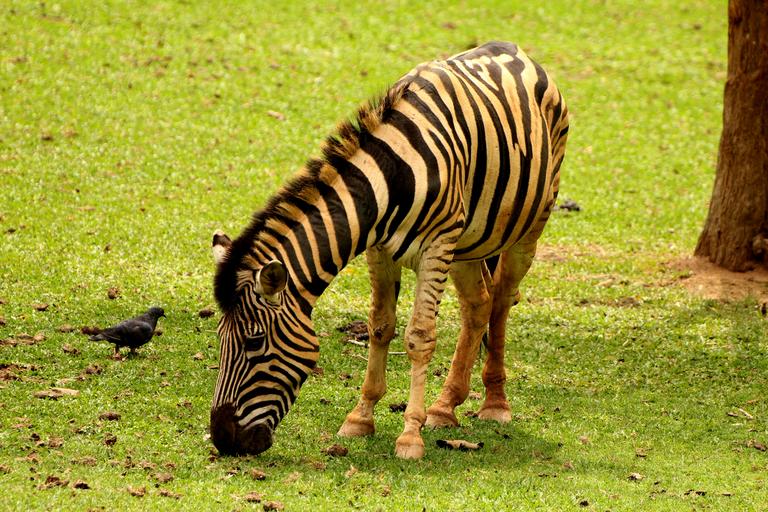 Keywords: zebra animal striped wild eating grass stripes african zoo feeding