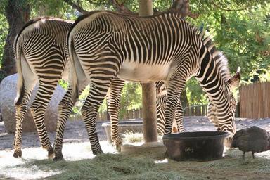 Keywords: zebras mammal africa eating hay zoo stripes fur horse animals