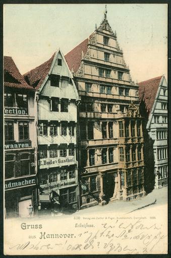 | Keywords: Zedler & Vogel PC 00430 1899 Gruss aus Hannover. Leibnizhaus. Bildseite koloriert, historische Gebäude Schmiedestraße Ecke Corvinusweg.jpg Im Lichtdruck-Verfahren reproduzierte und nachträglich kolorierte Aufnahme um 1899 der Firma Zedler Vogel als fortlaufen nummerierte Ansichtskarte Nummer 430 mit dem historischen Leibnizhaus in Hannover in der Schmiedestraße Ecke Corvinusweg Dieses Dokument wurde freundlicherweise von Heralde Schmitt-Ulms zum Scannen geliehen um es als Digitalisat über Commons nachhaltig allen Menschen zu Bildungszwecken zur Verfügung zu stellen Scan vom Original Bernd Schwabe in Hannover 1899 anonymer Fotograf; Druck Zedler Vogel PD-old Documents by Heralde Schmitt-Ulms Zedler Vogel Altes Leibnizhaus Hannover |