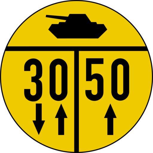 | Keywords: Zeichen militärische Lastenklasse - Panzer, neuere Version.svg de Zeichen militärische Lastenklasse an Brückenbauwerken befestigten Uferbereichen etc hier Kettenfahrzeuge Das Sinnbild žPanzer zeigt die neuere Version Ab 1993 wurden die diese Zeichen auf Autobahnen abgebaut Seit 2009 ordnet das Bundesverteidigungsministerium die Beschilderung nicht mehr an Fristen für den Abbau sind nicht ausgegeben worden Farbton des Schildes RAL-Verkehrsgelb Nicht in der StVO aufgeführt aber vom Bundesverkehrsministerium veröffentlichtes Zeichen own selbst gezeichnet von Mediatus Mediatus 23 August 2015 Herstellungsdatum v Cc-zero PD-GermanGov Diagrams of historic road signs of Germany 1992 set Military road signs in Germany Diagrams of road signs of Germany Military vehicle-related road signs |