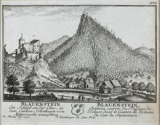 Keywords: Zentralbibliothek Solothurn - BLAUENSTEIN Ein Schloss an der Clus in dem Canton Solothurn von Mitternacht anzusehen Wappen BLAUENSTEIN Château auprès du Passage de lEcluse dans le Canton de Soleure du Cote du Septentrion - a0562.tif Artwork Creator Emanuel Büchel Information field Engraver David Herrliberger Blick von N auf Schloss Alt-Falkenstein das Städtchen Klus und die Wannenfluh Im Vordergrund Felder mit Zäunen und Gebäuden Weg nach Balsthal mit Steinkreuz auf abzweigendem Weg Staffagefiguren 1757 Kupferstich Size mm 139 87 institution Zentralbibliothek Solothurn object history credit line accession number Call number a0562 Zentralbibliothek Solothurn Public domain Information field ZBS form heading Vedute Information field ZBS form heading Landschaftsbild Zentralbibliothek Solothurn PD-old-100-1923 Emanuel Büchel Historical images of the castle Alt-Falkenstein |