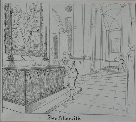 | Keywords: Zentralbibliothek Solothurn - Das Altarbild - a0422.tif Ein Knabe ist ganz in ein Altarbild mit der Heiligen Familie versunken Seine Mutter bringt ihm die vergessenen Schlüssel A boy is lost in an altarpiece with the Holy Family His mother brings him the forgotten key Un garçon se perd dans un retable avec la Sainte Famille Sa mère lui apporte la clef oublié between 1830 1840 Lithographie Size mm 186 158 institution Zentralbibliothek Solothurn object history credit line accession number Call number a0422 Zentralbibliothek Solothurn Public domain Information field ZBS form heading Illustration Zentralbibliothek Solothurn PD-old-70-1923 Historical images of Solothurn Altars in art |