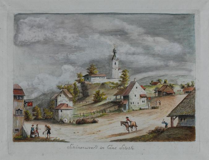 Keywords: Zentralbibliothek Solothurn - Schönenweerd im Cant Soloth - aa0284.tif Blick von W auf Häuser und die Kirche von Schönenwerd im Vordergrund die breite Strasse mit Leuten between 1850 1870 Technique Etching paper colored Size mm 346 145 institution Zentralbibliothek Solothurn object history credit line accession number Call number aa0284 Zentralbibliothek Solothurn Public domain Zentralbibliothek Solothurn PD-old-70-1923 Historical images of the canton of Solothurn Stiftskirche Schönenwerd Daniel Düringer |