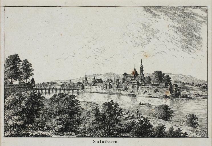 Keywords: Zentralbibliothek Solothurn - Solothurn - a0039.tif Blick von SE Glacis vor der Turnschanze auf die Stadt Solothurn links angeschnitten die Turnschanze Im Vordergrund Gebüsch und Staffagefiguren auf der Aare ein Boot between 1820 1880 Radierung Size mm 145 93 institution Zentralbibliothek Solothurn object history credit line accession number Call number a0039 Zentralbibliothek Solothurn Public domain Information field ZBS form heading Vedute Zentralbibliothek Solothurn PD-old-70-1923 Historical images of Solothurn |