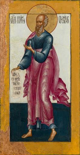 Keywords: Zephaniah from Yaroslavl (18 c, priv.coll).jpg THE PROPHET SAFONIY 12 000-15 000 GBP YAROSLAVL SECOND HALF OF THE 18TH CENTURY 89 by 46 cm The icon comes from the Prophets' row of a church iconostasis which often had an icon of the Mother of God enthroned in the centre and the Old Testament prophets whose preaching and visions foretold events in the Gospels bowed towards her in devotion The prophet Sofoniy also known as Sophonias and Zephaniah is one of the most mysterious of the Old Testament prophets No information on his life exists the only evidence for Sofoniy are his scriptural prophecies especially the messianic prophecy contained in the hymn glorified by the Orthodox Church as praising Zion as the place the Messiah will appear Our icon presents Sofoniy as a devout preacher he holds an unfurled scroll inscribed with his prophecy in his right hand and makes a devotional gesture towards the centre of the prophets ™ row with his left hand The figure of the prophet is cleverly portrayed with a vertically elongated form; the painting of the holy man ™s face hands and clothing is unusually fine and expressive rendered in a palette of joyous and intense colour This icon is one of the best and most characteristic examples of Yaroslavl painting in the latter half of the 18th century http //macdougallauction com/Indexx asp id 17710 lx a 18 c 18 Icons of Zephaniah Files uploaded by Shakko from various sources MacDougall's Fine Art Auctions Icons of Yaroslavl PD-old |