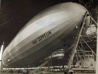 Keywords: graf zeppelin grafzeppelin aviation aircraft airship dirigible lighter than air lighterthanair zeppelin deutsche luftschiffahrts-aktiengesellschaft deutscheluftschiffahrtsaktiengesellschaft delag deutsche zeppelin-reederei deutschezeppelinreederei dzr d-lz 127 dlz127 luftschiffbau zeppelin luftschiffbauzeppelin zeppelin lz 127 zeppelinlz127 lz 127 lz127 lz 127 graf zeppelin lz127grafzeppelin luftschiff luftschiff lz 127 luftschifflz127 text Call No.: 12_00294 Year: 1933 Corp. Name: Zeppelin Subject: Zeppelin Notes: ""The huge dirigible Graf Zeppelin is shown tight against the mooring mast in the Good-Year Zeppelin Corporation hangar at Akron, OH., after a 100,000 mile stormy flight from Miami, FL., Oct. 25. The canny German skipper, Dr. Hugo Eckener, who is taking his ship to the Chicago Century of Progress, waited out a wind and rain squall for nine hours before trying to bring down his ship at Akron."" Description: 6 x 8 Black and White Photo Call No.: 12_00294 Year: 1933 Corp. Name: Zeppelin Subject: Zeppelin Notes: ""The huge dirigible Graf Zeppelin is shown tight against the mooring mast in the Good-Year Zeppelin Corporation hangar at Akron, OH., after a 100,000 mile stormy flight from Miami, FL., Oct. 25. The canny German skipper, Dr. Hugo Eckener, who is taking his ship to the Chicago Century of Progress, waited out a wind and rain squall for nine hours before trying to bring down his ship at Akron."" Description: 6 x 8 Black and White Photo