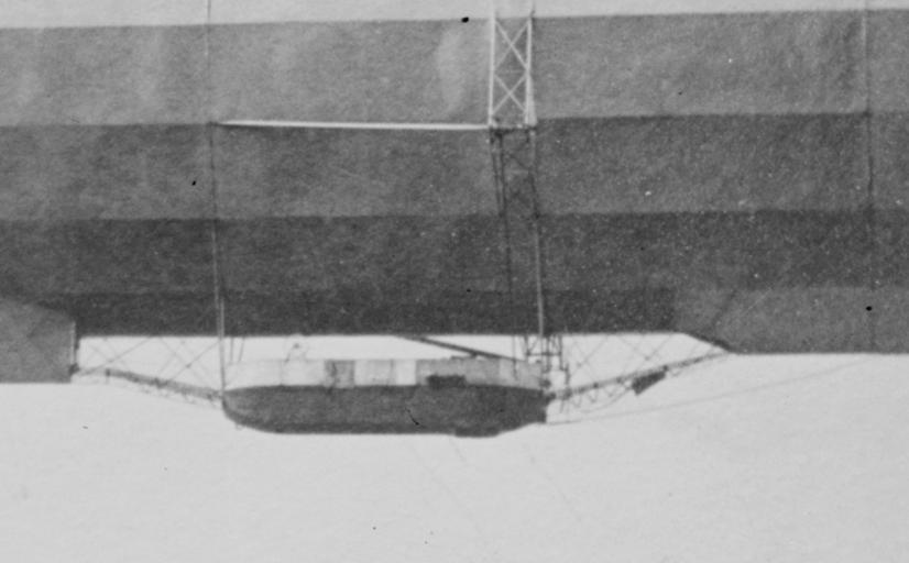 Keywords: Zeppelin III in flight 04188u tif rear gondola.png en The German Zeppelin airship 's rear gondola probably LZ 12 military number Z III April 25 1912 to August 1 1914 with incorrect year from Library of Congress If the 1907 date is correct then this can only be the LZ3 military number Z I with a rudder added after its first flights but was LZ3 ever modified that way Other possibilities LZ 4 June 20 1908 to 4 August 1908 had a rudder; LZ 6 August 25 1909 to 1910 This is a PNG version losslessly cropped from original TIFF but otherwise unmodified from the original high resolution TIFF from the Library of Congress archive en Original information from Library of Congress source Original file has handwriting ZEPPELIN III in white and 872-12 in black <poem> TITLE Blimp Zeppelin No 3 in flight CALL NUMBER LC-B2- 872-12P P REPRODUCTION NUMBER LC-DIG-ggbain-04188 digital file from original neg RIGHTS INFORMATION No known restrictions on publication MEDIUM 1 negative glass ; 5 x 7 in or smaller CREATED/PUBLISHED 1907 date created or published later by Bain </poem> LOC-image ggbain 04188 http //memory loc gov/master/pnp/ggbain/04100/04188u tif uncompressed archival TIFF version 1907 Bain News Service publisher No known restrictions on publication File Zeppelin III in flight jpg JPEG lossily converted and modified from original File Zeppelin III in flight 04188u tif Original untouched high resolution TIFF File Zeppelin III in flight 04188u tif small png Uncropped JPEG downscaled from original TIFF File Zeppelin III in flight 04188u tif png PNG losslessly cropped to remove frame from original TIFF File Zeppelin III in flight 04188u tif front gondola png PNG losslessly cropped from original TIFF to show front gondola File Zeppelin III in flight 04188u tif rear gondola png PNG losslessly cropped from original TIFF to show rear gondola File Zeppelin III in flight 04188u tif empennage png PNG losslessly cropped from original TIFF to show empennage PD-USGov Airship gondolas Zeppelin |