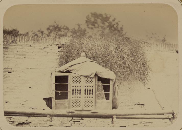 Keywords: Zeravshan Okrug. Palanquins of Saint Musa Khan Preserved in the Mosque of Saint Makhdum Azam in the Village of Dakhbit WDL3896.png Artwork ru Богаевский иколай Владими ович 1843 1912 гг fr Bogaevskii Nikolaï V 1843-1912 en Bogaevskii Nikolai V 1843-1912 zh 亚历山大·L· ,1840-1888 年 pt Bogaevskii Nikolai V 1843-1912 ar بوغافسكي، نيكولاي ف ، 1843-1912 es Bogaevskii Nikolai V 1843-1912 ru Зе авшанский ок уг Паланкины святого усы-хана х анящиеся в мечети святого ахдуми Азама в кишлаке Дагбит fr Okrug de Zeravchan Palanquins du vénérable Musa Khan conservés dans la mosquée du vénérable Makhdoum Azam dans le village de Dakhbit en Zeravshan Okrug Palanquins of Saint Musa Khan Preserved in the Mosque of Saint Makhdum Azam in the Village of Dakhbit zh 扎拉夫桑区 达克比特 麦赫 姆·阿扎姆清 寺中 存的 穆萨·汗的轿子 pt Okrug de Zeravshan Palanquim do santo Musa Khan preservado na mesquita de santo Mahdum Azam no povoado de Dakhbit ar زيرافشان أوكروج مِحَفَّة الوَلِيّ موسى خان المحفوظة بمسجد الوَلِيّ مخدوم عزَّام في بلدة دَخبيت ru Эта фотог афия паланкина носилок из мечети ахдуми Азама в кишлаке Дагбит Узбекистан соде жится в а хеологической части <em> Ту кестанского альбома </em> Шеститомное фотог афическое исследование было подготовлено и издано в 1871 1872 гг под пат онажем гене ала Константина П фон Кауфмана пе вого гене ал-губе нато а 1867 1882 гг Ту кестана как называли в то в емя те ито ию Цент альной Азии п инадлежавшую Российской импе ии Дагбит находился на те ито ии Зе авшанского <em>ок уга</em> об азованного в составе Российской импе ии в 1868 г после того как оссийские войска заняли восточную часть Буха ского ханства сов еменный Узбекистан К концу 1868 г к ок угу была п исоединена те ито ия вок уг го ода Пенджикента сов еменного Панджакента на севе о-западе Таджикистана К 1871 г в ок уг были включены феодальные владения в ве ховьях еки Зе авшан п итока Амуда ьи Дагбит считается таджикским топонимом и относится к местности населенной узбеками и таджиками П едставленный на фотог афии паланкин п инадлежал почитаемому елигиозному лиде у усе-хану Паланкин п едставляет собой бесколесное с едство пе едвижения пе емещаемое людьми и в данном случае состоит из к ытой кабины и длинных шестов кото ые подде живались носильщиками <br>Д евности; Фотог афические исследования; Паланкины fr Cette photographie du palanquin chaise à porteurs dans la mosquée Makhdoum Azam située dans le village de Dakhbit Ouzbékistan est extraite de l ouvrage archéologique <em>Album du Turkestan</em> Cet inventaire photographique en six volumes fut réalisé entre 1871 et 1872 sous le patronage du général Konstantin P von Kaufman premier gouverneur général 1867-1882 du Turkestan nom donné aux territoires d'Asie centrale de l'Empire russe Le village de Dakhbit était situé dans le district <em>okrug</em> de Zeravchan qui devint partie intégrante de l Empire russe en 1868 lorsque les troupes russes occupèrent la partie orientale du khanat de Boukhara actuel Ouzbékistan Fin 1868 la zone autour de la ville de Pendjikent actuel Panjakent dans le nord du Tadjikistan a été annexée au district Dès 1871 le district avait absorbé des fiefs dans le cours supérieur du fleuve Zeravchan un affluent de l Amou-Daria « Dakhbit » est considéré comme un toponyme tadjik dans une région habitée par des populations ouzbek et tadjik Le palanquin montré ici appartint au chef religieux vénéré Musa Khan Il s agissait d un mode de déplacement sans roues à propulsion humaine constitué ici d une cabine fermée et de longues perches soulevées par des porteurs <br>Antiquités; Inventaires photographiques; Chaises à porteurs en This photograph of a palanquin sedan chair from the Makhdum Azam mosque in the village of Dakhbit Uzbekistan is from the archeological part of <em>Turkestan Album</em> The six-volume photographic survey was produced in 1871 72 under the patronage of General Konstantin P von Kaufman the first governor-general 1867 82 of Turkestan as the Russian Empire s Central Asian territories were called Dakhbit was located in Zeravshan District <em>okrug</em> formed as part of the Russian Empire in 1868 when Russian troops occupied the eastern part of the Khanate of Bukhara in present-day Uzbekistan By the end of 1868 the area around the town of Pendzhikent present-day Panjakent in northwest Tajikistan was added to the district By 1871 the district had absorbed fiefdoms in the upper reaches of the Zeravshan River a tributary of the Amu Darya Dakhbit is considered a Tajik toponym in an area inhabited by both Uzbek and Tajik peoples The palanquin shown here belonged to the Musa Khan a revered religious leader  It was a mode of human-powered wheel-less transport