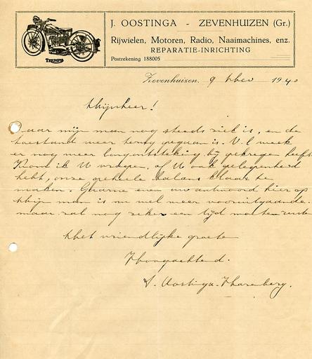 | Keywords: triumph Inhoud schrijven: Daar mijn man nog steeds ziek is, en de toestand weer terug gegaan is. V.l. (Verleden) week er nog weer longontsteking bij gekregen heeft. Kom ik U vragen of U ook gelegenheid hebt, onze gehele balans klaar te maken. Gaarne even uw antwoord hier op. ...... man is nu wel weer vooruitgaande maar zal nog zeker een tijd moeten rusten. Met vriendelijke groeten, Hoogachtend J. Oostinga-Hazenberg Inhoud schrijven: Daar mijn man nog steeds ziek is, en de toestand weer terug gegaan is. V.l. (Verleden) week er nog weer longontsteking bij gekregen heeft. Kom ik U vragen of U ook gelegenheid hebt, onze gehele balans klaar te maken. Gaarne even uw antwoord hier op. ...... man is nu wel weer vooruitgaande maar zal nog zeker een tijd moeten rusten. Met vriendelijke groeten, Hoogachtend J. Oostinga-Hazenberg |
