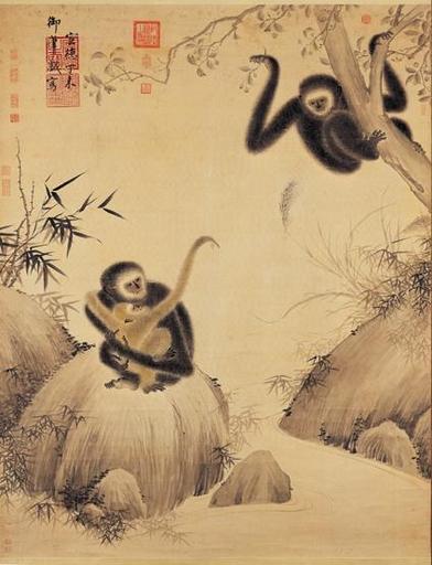 | Keywords: Zhu-Zhanji-Gibbons-at-Play.jpg Artwork creator Xuande langSwitch 戲猿 <br>Gibbons at Play 戲猿 Hrající si gibboni langSwitch Year 丁 of the Xuande Era i e 1427 according to van Gulik's reading of the emperor's inscription on the painting Rok 丁 éry Süan-te tedy 1427 podle van Gulikova čtení data u císařova podpisu na obrazu langSwitch Hanging scroll ink and colors on paper Závěsný svitek tuš a barvy na papíře 162 3 x 127 7 cm NPM Taipei http //mobilecatalog digitalarchive tw/dacs5/System/Exhibition/Detail jsp OID 539031 Other versions PD-old-100 Paintings in the National Palace Museum Paintings by Xuande Emperor Gibbons in art |