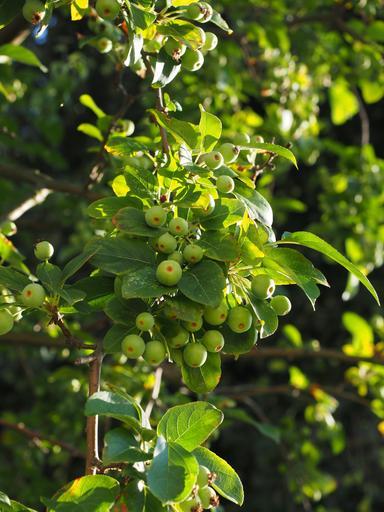 Keywords: zieraepfel wild apples ornamental apple tree wild apple tree fruits green small immature apple leaves tree fruit
