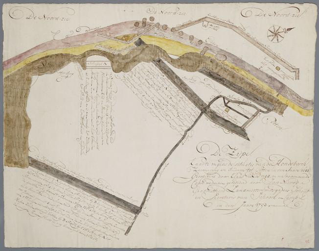 | Keywords: zijpe 'Kaarte wegens de situatie van de Hondschbosch Zeewering en duinen tot Petten in den Jaare 1681'. Gekopieerd door Klaas Kos 1788 en na voornoemde kopie door Jan Nierop in 1793. Met aanduiding van de lokatie van het oude en het nieuwe Gemeenlandshuis en uitvoerige informatie over de aanwezige waterstaatkundige werken. Windroos rechtsboven. Vervaardiger: Nierop, J. Catalogusnummer: PR 1004149 'Kaarte wegens de situatie van de Hondschbosch Zeewering en duinen tot Petten in den Jaare 1681'. Gekopieerd door Klaas Kos 1788 en na voornoemde kopie door Jan Nierop in 1793. Met aanduiding van de lokatie van het oude en het nieuwe Gemeenlandshuis en uitvoerige informatie over de aanwezige waterstaatkundige werken. Windroos rechtsboven. Vervaardiger: Nierop, J. Catalogusnummer: PR 1004149 |