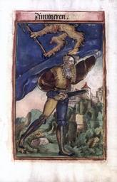 | Keywords: Zimmern 07.jpg Fähnrich mit Fahne der Herrschaft Zimmern aus Wapen des heyligen Römischen Reiches Teutscher Nation Frankfurt 1545 Exemplar der Bayerischen Staatsbibliothek München Rar 2155 Mäzene Sammler Chronisten Die Grafen von Zimmern und die Kultur des schwäbischen Adels Ausstellungskatalog 2012 ISBN 978-3-7630-2625-8 1545 Creator Jacob Kallenberg PD-old-100 Wapen des Heyligen Römischen Reichs Teutscher Nation Coats of arms of Zimmern family Books in the Bayerische Staatsbibliothek | ||||