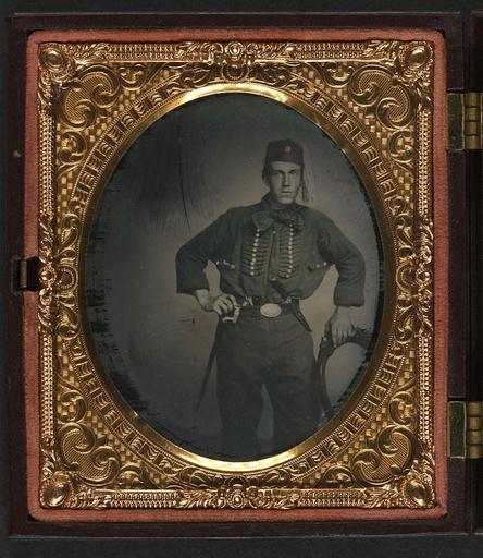Keywords: library of congress libraryofcongress dc:identifier=http://hdl.loc.gov/loc.pnp/ppmsca.30609 dc:identifier=httphdllocgovlocpnpppmsca30609 xmlns:dc=http://purl.org/dc/elements/1.1/ xmlns:dc=httppurlorgdcelements11 u.s. civil war uscivilwar american civil war americancivilwar the civil war thecivilwar civil war civilwar war between the states warbetweenthestates united states of america unitedstatesofamerica u.s.a. usa the union theunion union the north thenorth yankee yankees soldier zouaves zouave union zouave unionzouave bayonet bowie knife bowieknife knife gun pistol revolver smith & wesson smithwesson smith and wesson smithandwesson smith & wesson revolver smithwessonrevolver smith and wesson revolver smithandwessonrevolver s&w sw s&w revolver swrevolver people photo border picture frame round [Zouave portrait from: Two portraits of an unidentified soldier in Union uniform and Zouave uniform with bayonet and sheath, bowie knife, and Smith and Wesson revolver] [between 1861 and 1865] 2 photographs in 1 case : sixth-plate ambrotype, hand-colored ; 9.6 x 8.4 cm (case) Notes: Title devised by Library staff. Case: Berg, no. 2-35. Deposit; Tom Liljenquist, 2010; (D 062) Subjects: United States.--Army.--People--1860-1870. Zouaves--Union--1860-1870. Soldiers--Union--1860-1870. Military uniforms--Union--1860-1870. United States--History--Civil War, 1861-1865--Military personnel--Union. Format: Portrait photographs--1860-1870. Ambrotypes--Hand-colored--1860-1870. Rights Info: No known restrictions on publication. Repository: Library of Congress, Prints and Photographs Division, Washington, D.C. 20540 USA, hdl.loc.gov/loc.pnp/pp.print Part Of: Ambrotype/Tintype filing series (Library of Congress) (DLC) 2010650518 Liljenquist Family collection (Library of Congress) (DLC) 2010650519 More information about this collection is available at hdl.loc.gov/loc.pnp/pp.lilj Persistent URL: hdl.loc.gov/loc.pnp/ppmsca.30609 Call Number: AMB/TIN no. 2625 [Zouave portrait from: Two portraits of an unidentified soldier in Union uniform and Zouave uniform with bayonet and sheath, bowie knife, and Smith and Wesson revolver] [between 1861 and 1865] 2 photographs in 1 case : sixth-plate ambrotype, hand-colored ; 9.6 x 8.4 cm (case) Notes: Title devised by Library staff. Case: Berg, no. 2-35. Deposit; Tom Liljenquist, 2010; (D 062) Subjects: United States.--Army.--People--1860-1870. Zouaves--Union--1860-1870. Soldiers--Union--1860-1870. Military uniforms--Union--1860-1870. United States--History--Civil War, 1861-1865--Military personnel--Union. Format: Portrait photographs--1860-1870. Ambrotypes--Hand-colored--1860-1870. Rights Info: No known restrictions on publication. Repository: Library of Congress, Prints and Photographs Division, Washington, D.C. 20540 USA, hdl.loc.gov/loc.pnp/pp.print Part Of: Ambrotype/Tintype filing series (Library of Congress) (DLC) 2010650518 Liljenquist Family collection (Library of Congress) (DLC) 2010650519 More information about this collection is available at hdl.loc.gov/loc.pnp/pp.lilj Persistent URL: hdl.loc.gov/loc.pnp/ppmsca.30609 Call Number: AMB/TIN no. 2625 |