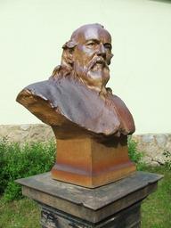 Keywords: Zsolnay Vilmos Zsolnay Múzeum kert.JPG Zsolnay Vilmos mellszobra a pécsi Zsolnay Múzeum kertjében own photo by uploader 2009 own work ; sculptor Vilmos Zsolnay Zsolnay Museum Busts in Pécs