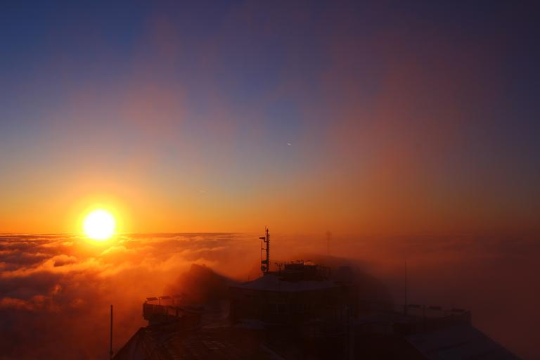 Keywords: zugspitze bavaria east summit sunrise alpine summit sky mountain imposing mountaineering selva marine landscape calendar image postkartenmotiv hiking mountains clouds summit cross