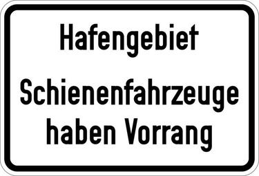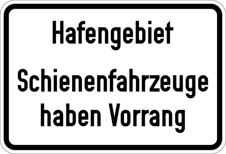 | View Original: | Zusatzzeichen 816 - Hafengebiet - Schienenfahrzeuge haben Vorrang.svg (965x660) | |||